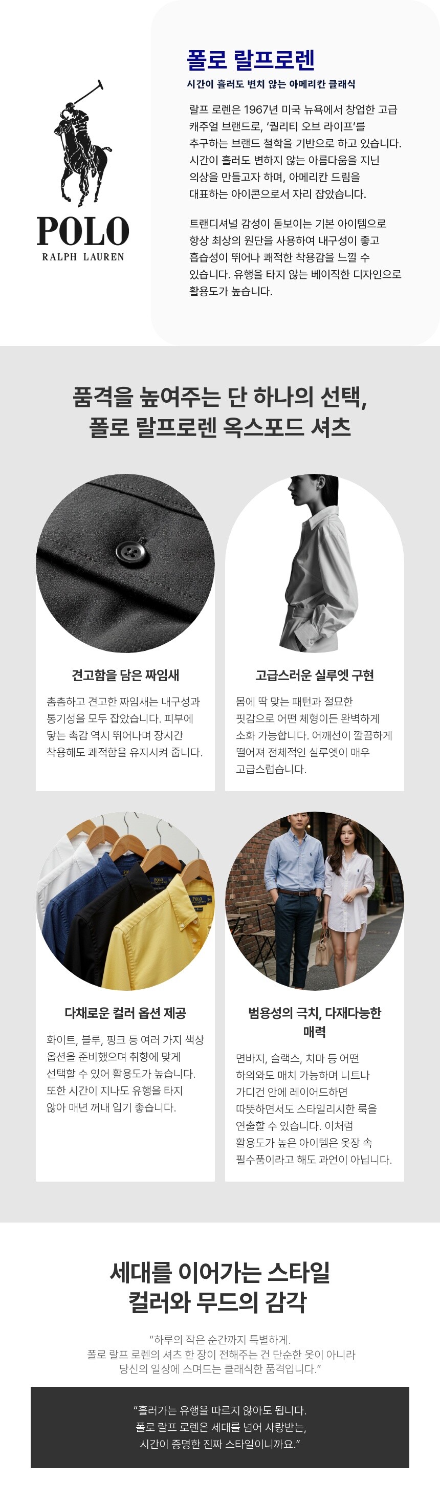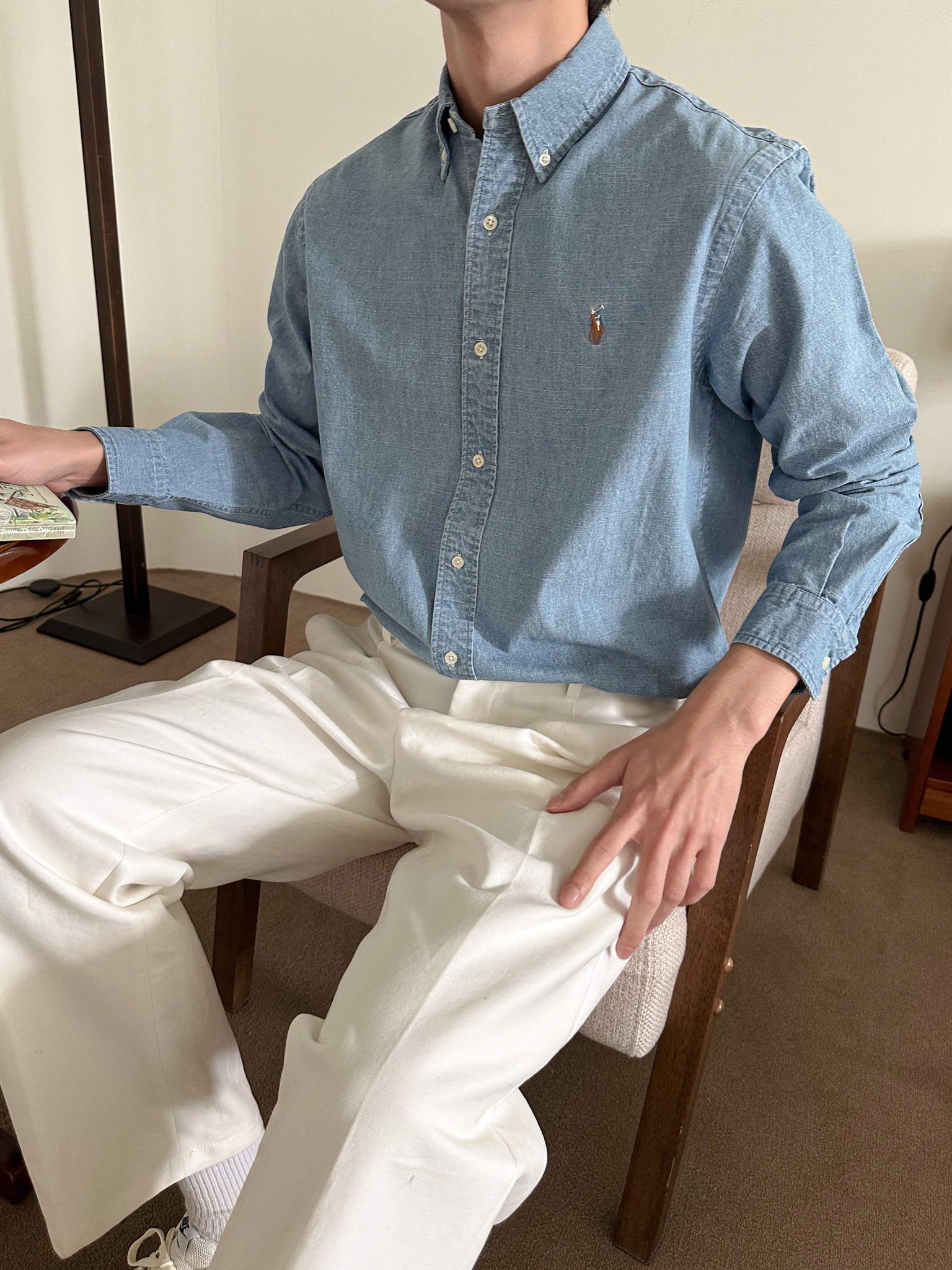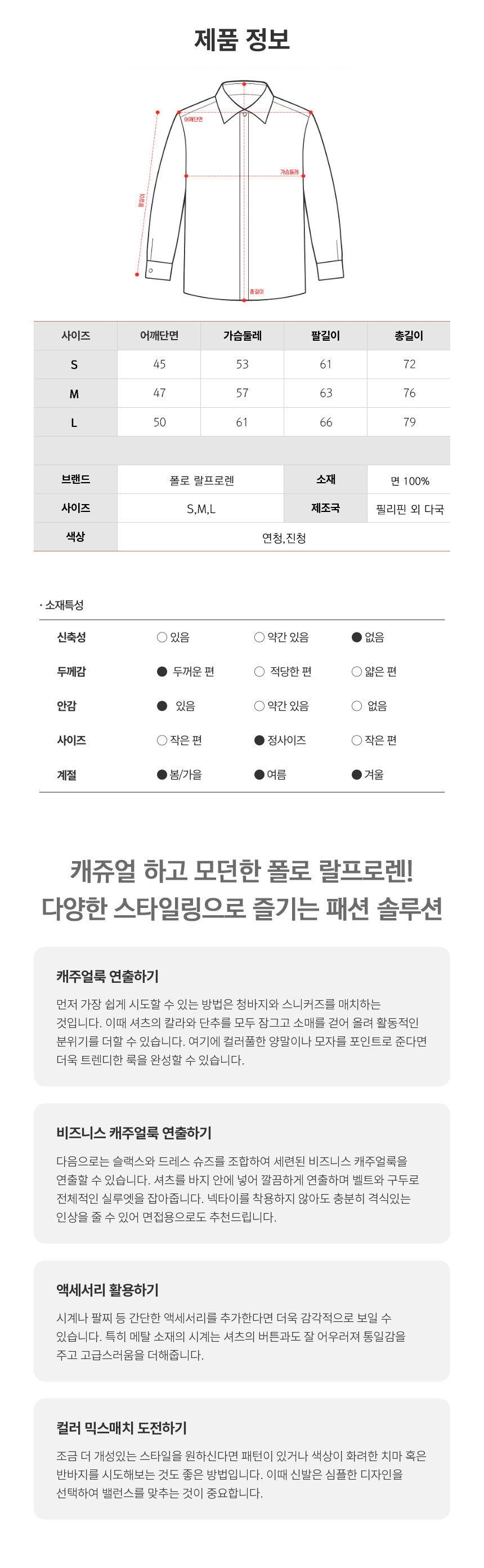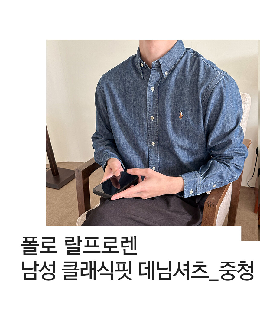 폴로 랄프로렌 남성 클래식핏 데님셔츠 연청 중청