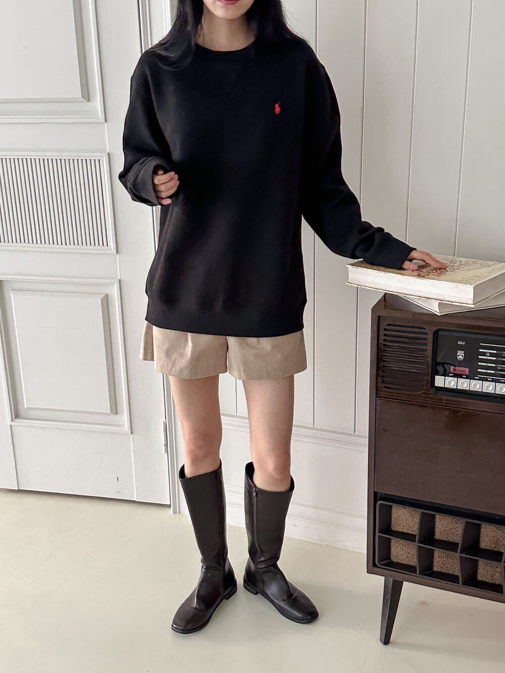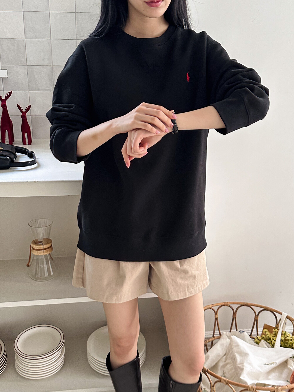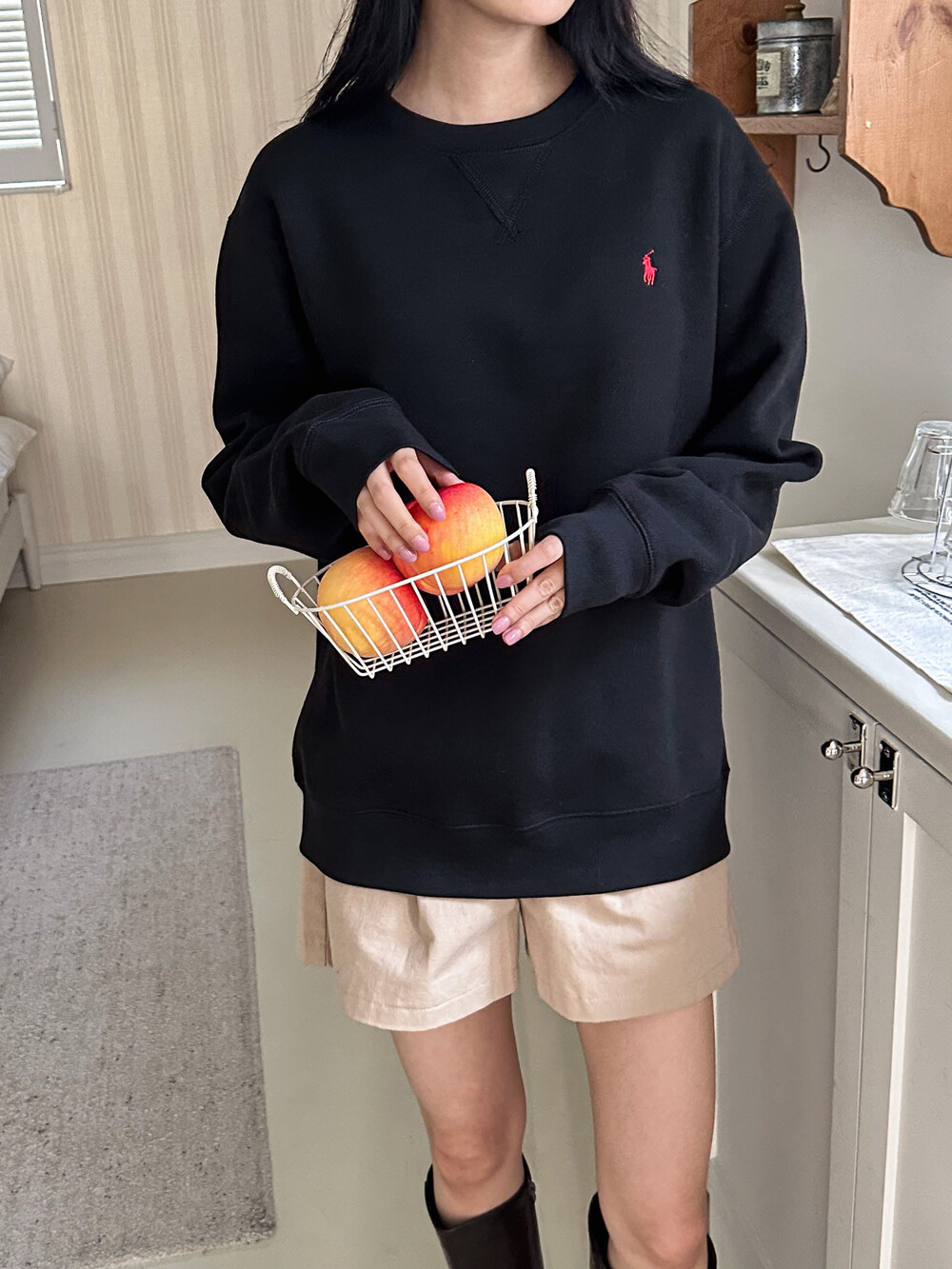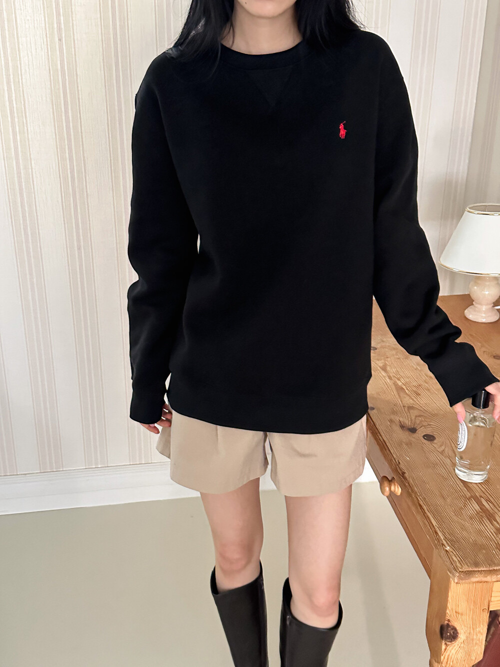 폴로 랄프로렌 여성 보이즈 맨투맨 블랙 오트밀 네이비