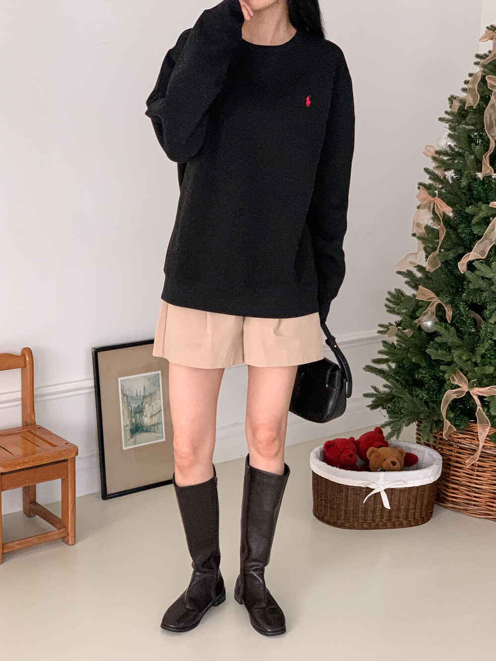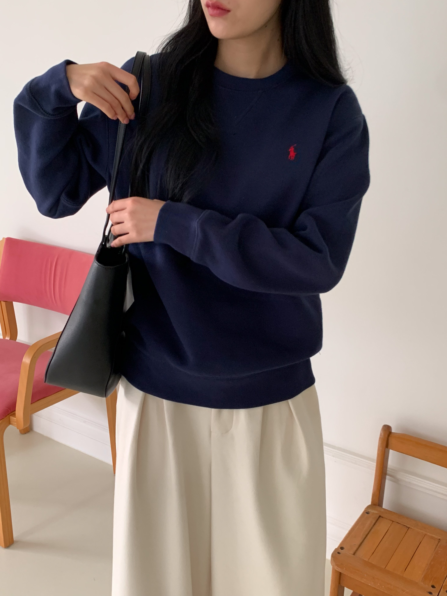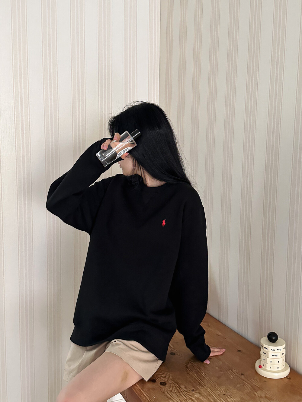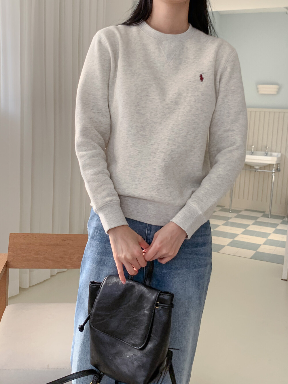 폴로 랄프로렌 여성 보이즈 맨투맨 블랙 오트밀 네이비