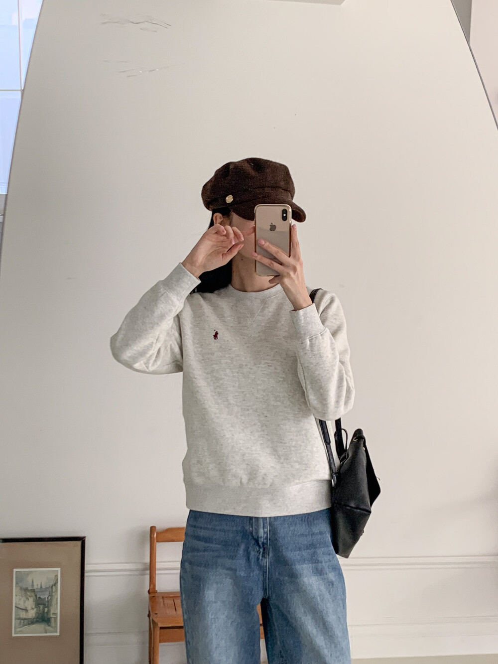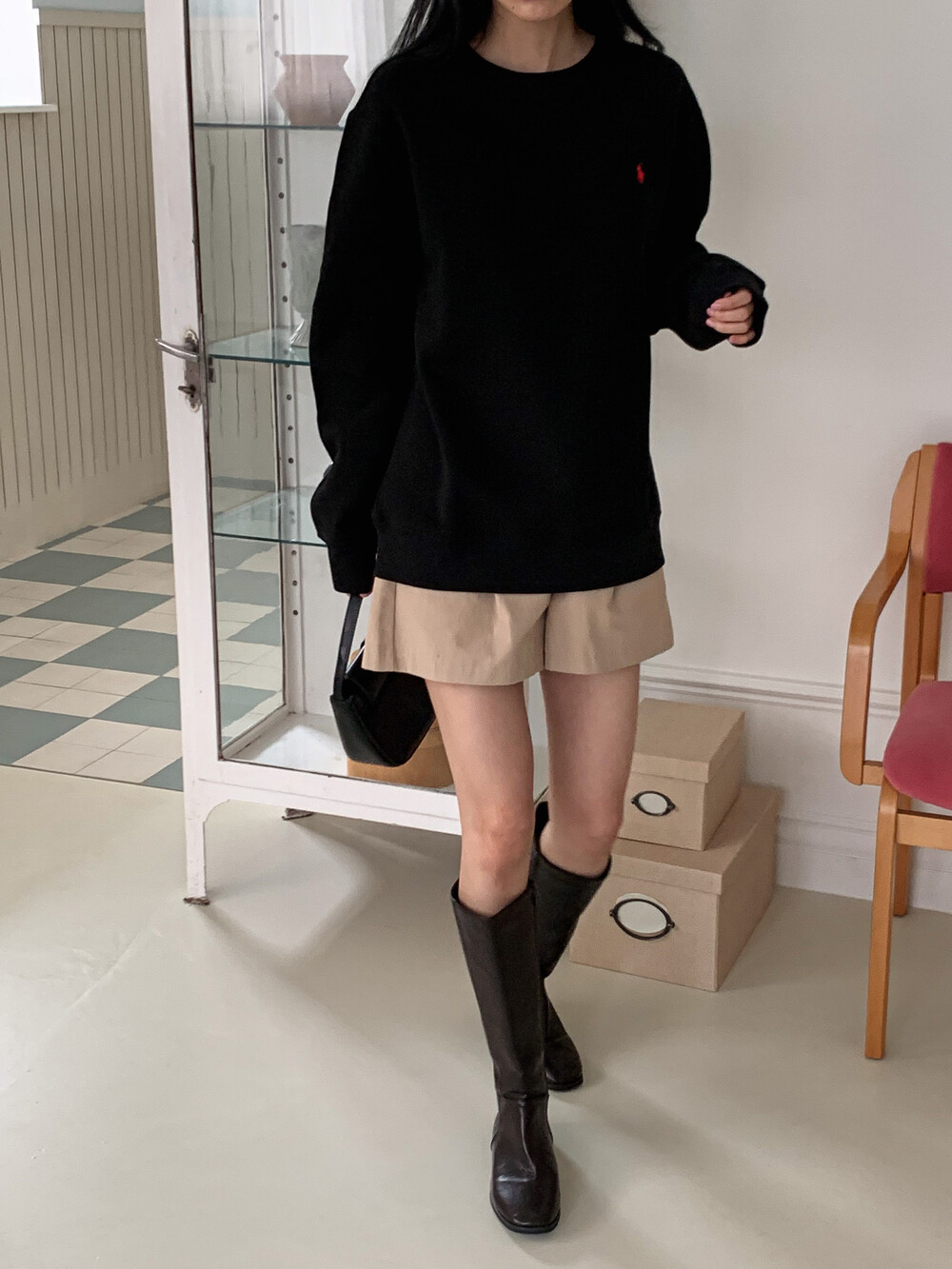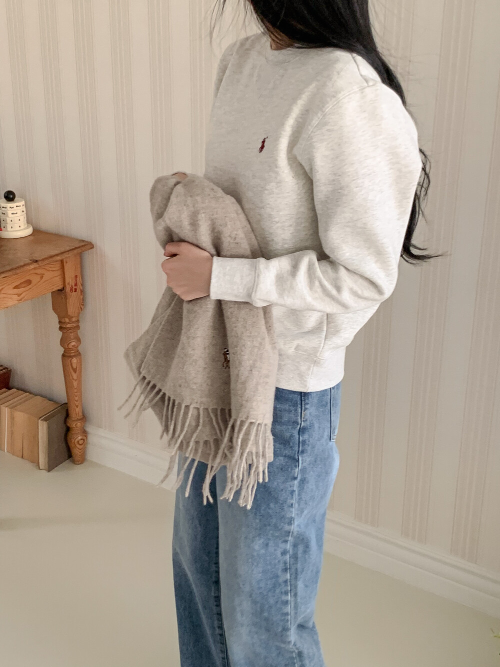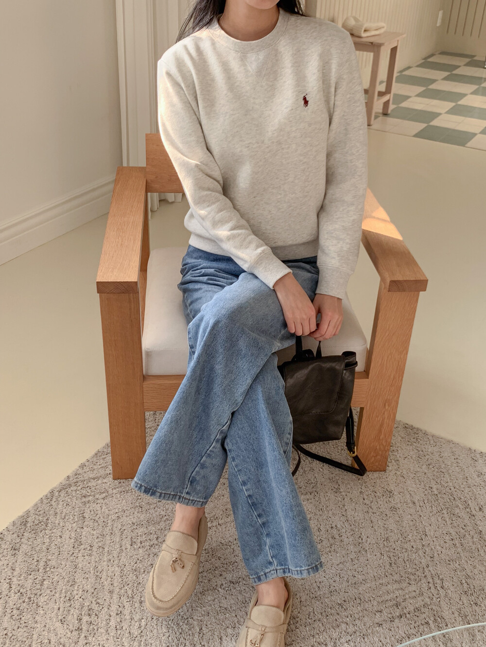 폴로 랄프로렌 여성 보이즈 맨투맨 블랙 오트밀 네이비